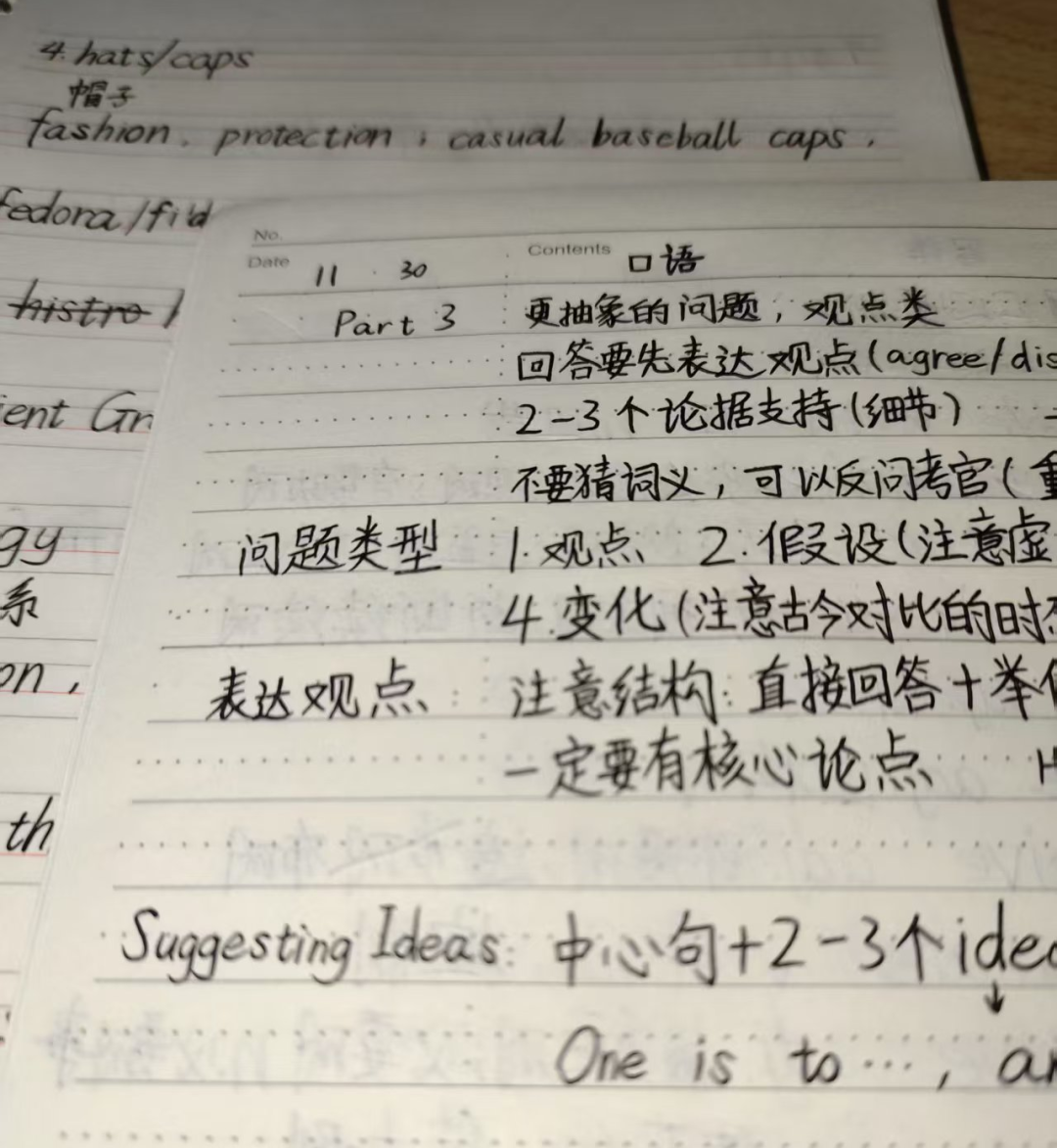 报班于我而言是一个克服自律懈怠的辅助,半个多学期的雅思班学习过程,使得我在大三上的学业、生活中也拨出了时间来慢慢推进雅思的学习。在班课过程中也基本能保证一些练习的量,从而使每周都相对前一周在雅思学习中有所进步。