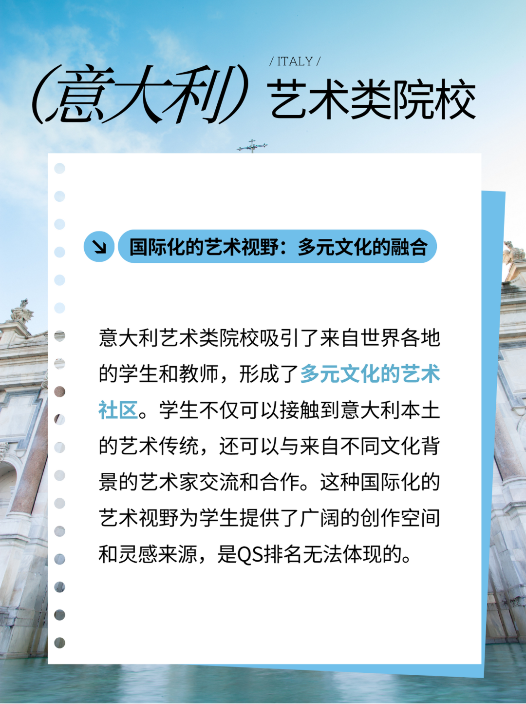 意大利艺术类院校未进入QS排名,并不意味着它们的实力不足。相反,它们在艺术实践、文化传承、国际化视野、创新精神、社会影响力、个性化教育和全球认可等方面都有着卓越的表现。QS排名的评价体系虽然有其价值,但它无法全面衡量艺术教育的真正价值。因此,我们在选择意大利艺术类院校时,不应仅仅依赖QS排名,而应从更广泛的视角去解读它们的实力和魅力。