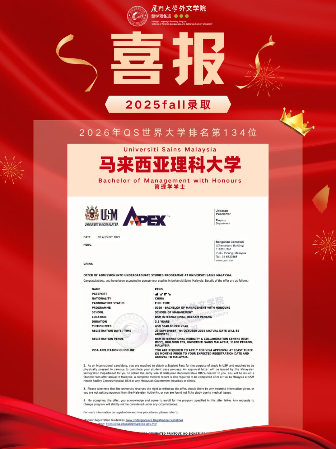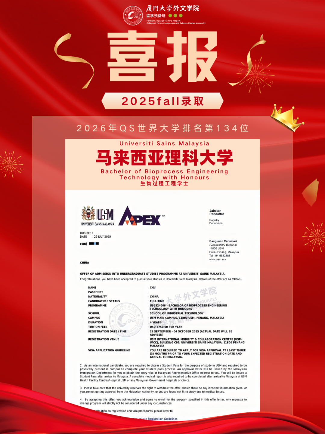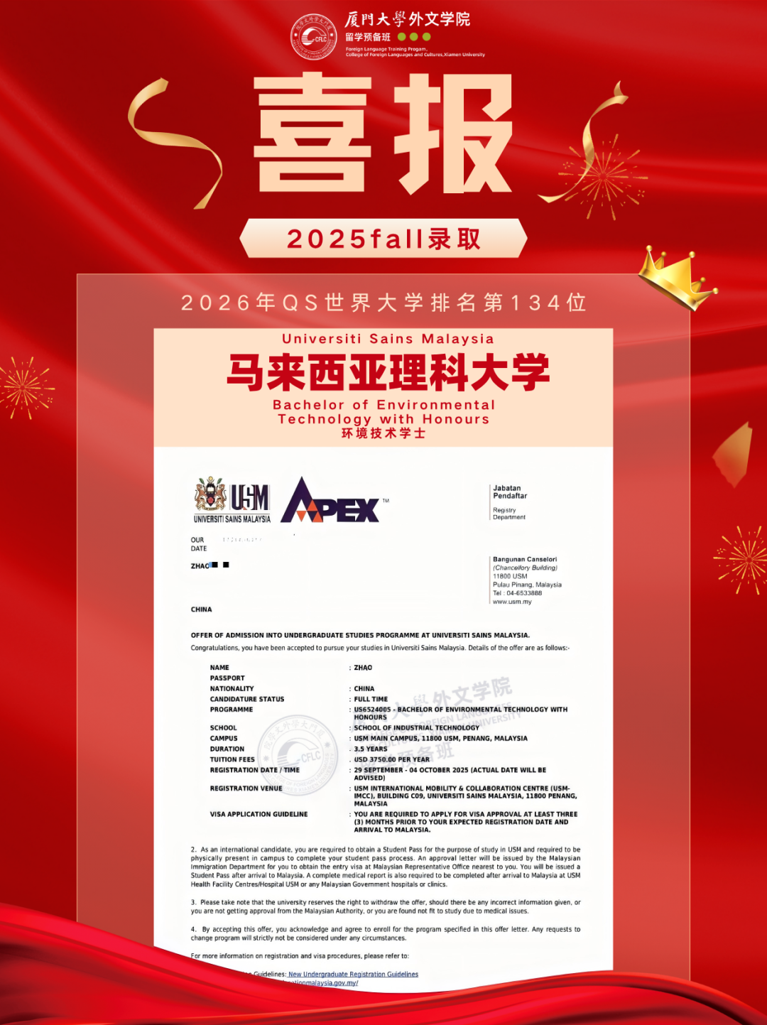 2025马来西亚录取Offer新鲜出炉,换条赛道也能读QS前100!