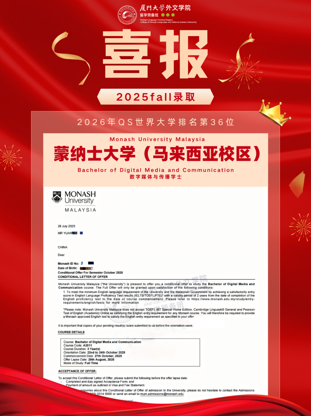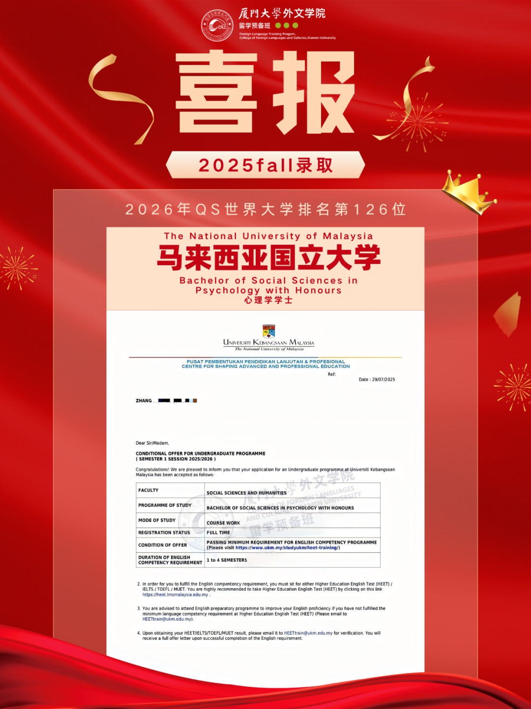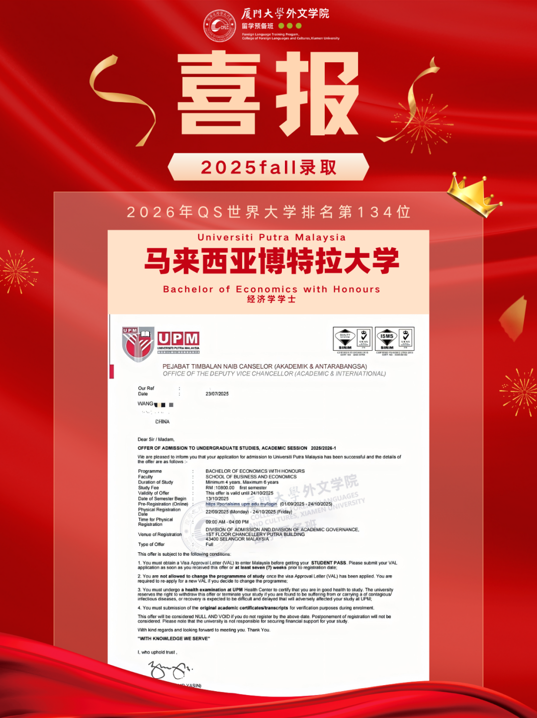 2025马来西亚录取Offer新鲜出炉,换条赛道也能读QS前100!