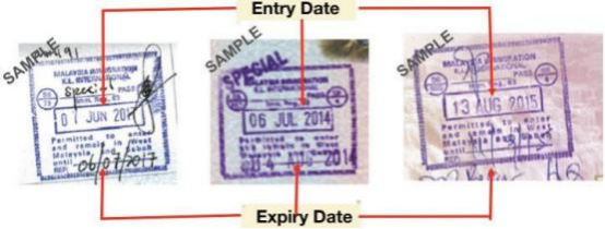 出入境检查后,学生会获得一张写有特别通行证(Special Pass/ SP)的盖章;离开柜台前,请确保获得的是以下的盖章(样本显示如下)